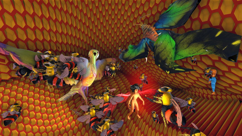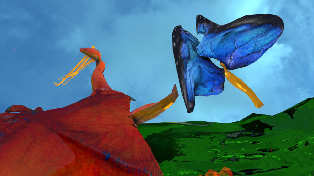 El trabajo de la artista comprende dos animaciones basadas en la imaginería de Manuel Quintín Lame, que conecta el Sur Occidente de Colombia con Cuenca en Ecuador.